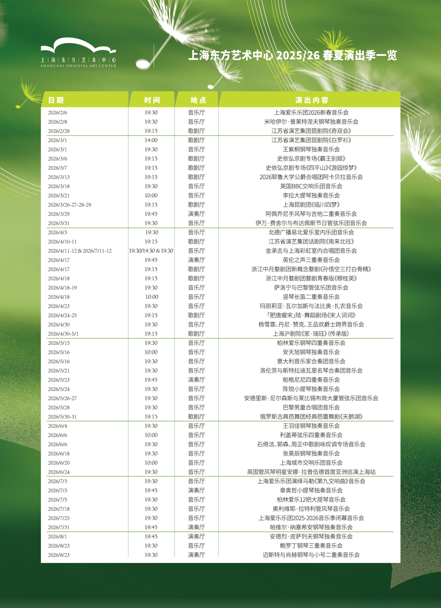 盛景之后,上海舞台迎来了一个不同的春夏。昨天,东艺发布2025/26春夏演出季,主题定为“乘风而至,万物生”,2月至8月,将有49台61场精彩演出陆续登台。