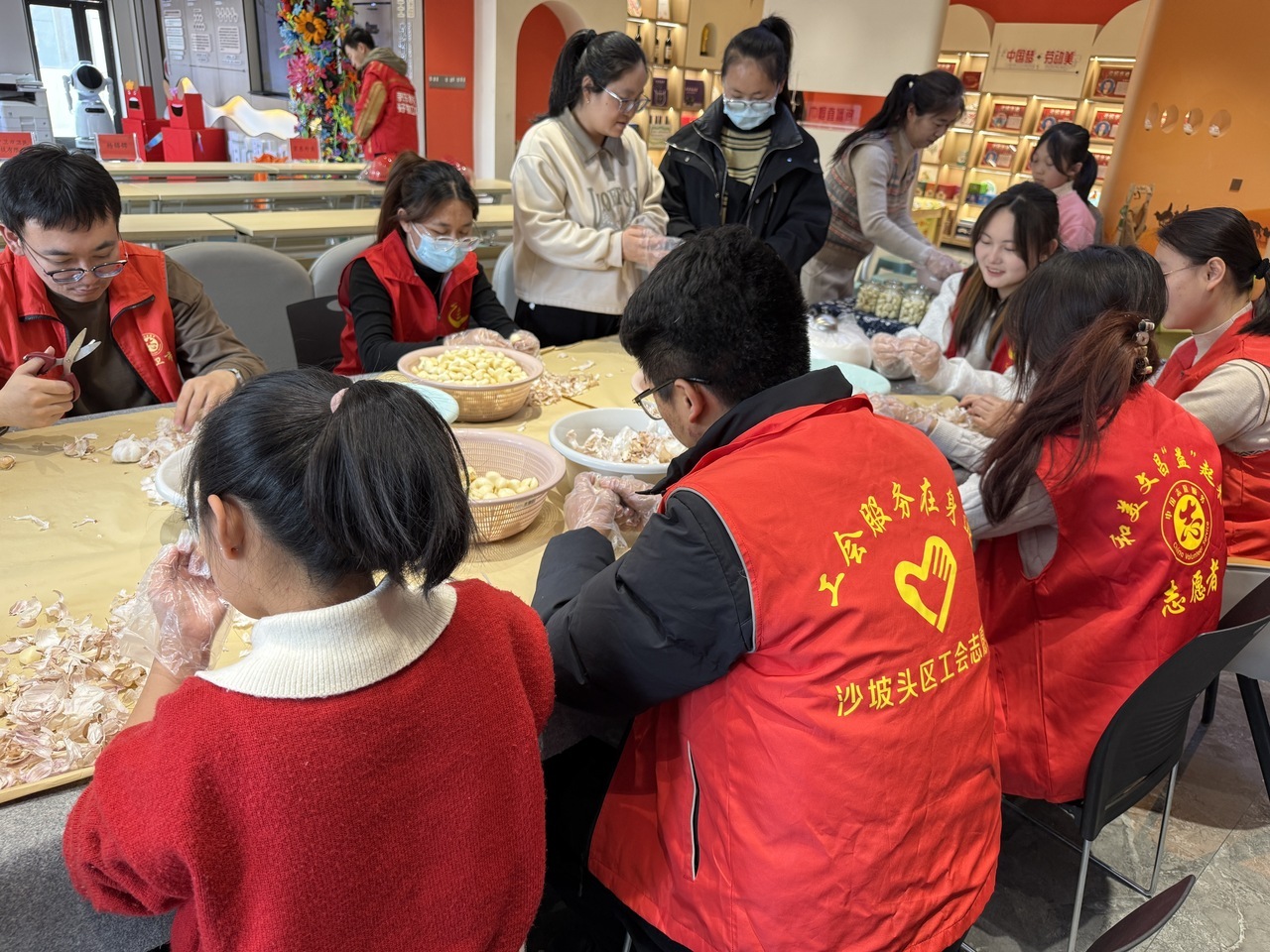 活动在一段充满传统文化韵味的腊八节宣传短片播放中拉开帷幕。短片向参与者介绍了腊八节的起源与习俗,让他们沉浸于浓厚的传统节日文化氛围中。随后的互动环节,各类趣味游戏精彩纷呈:在“剥蒜争霸,腊八乐吧”比赛中,大家手法娴熟、你追我赶,在欢声笑语中感受团队协作的乐趣;在“一瓶腊八蒜,年味带回家”手工制作环节,大家亲手将蒜瓣装入瓶中,倒入醋汁,封存起一份属于自己的“新年期盼”;在“一碗腊八饭,团圆幸福年”环节,大家品尝了社区精心准备的腊八粥,一碗碗软糯香甜的腊八粥不仅温暖了每个人的胃与心,还为工会组织和劳动者之间搭建起一座温馨的沟通桥梁。