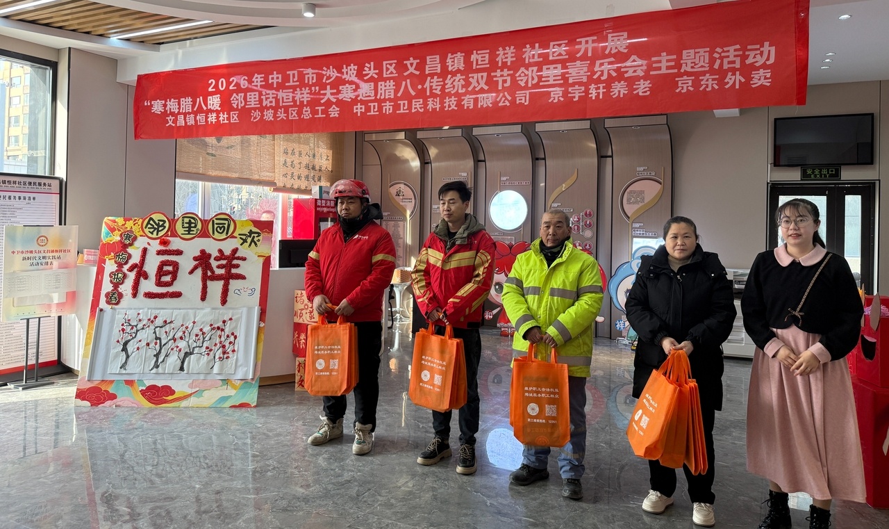 1月20日德恒财富,宁夏回族自治区中卫市沙坡头区总工会联合文昌镇恒祥社区工会驿站开展了“寒梅腊八暖 邻里话恒祥”——大寒遇腊八·传统双节邻里喜乐会活动德恒财富,为30余名外卖配送员、环卫工人、快递员等劳动者及社区居民送上节日的问候与关怀。